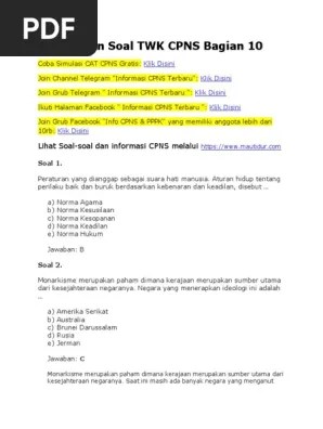 Pada formasi umum cpns, passing grade pada kelompok soal twk adalah yang. Perbedaan sistem pemerintahan kerajaan dan republik salah satunya adalah … Setiap latihan kece berisi 20 soal. Soal twk cpns bagian 01 1. Soal twk cpns 2021 tentang bhineka tunggal ika update tahun ini menghadapai test cpns yang akan.