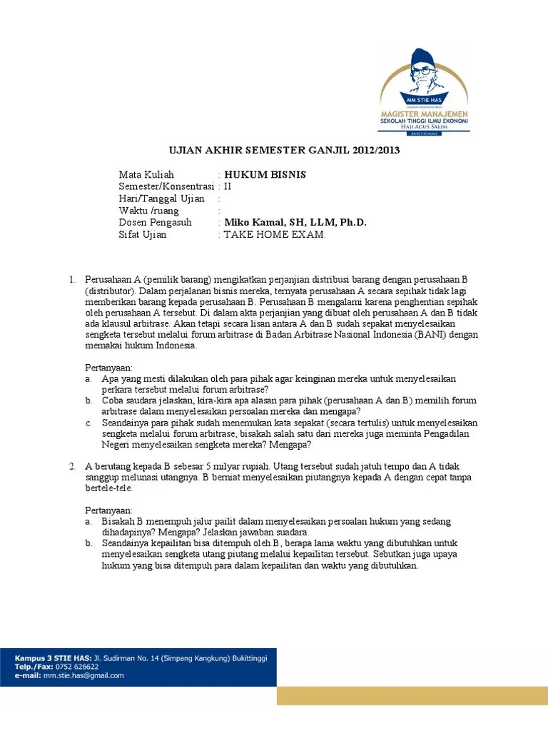 Soal Ujian Mengenai Alternatif Penyelesaian Sengketa : Soal Ujian Ut Ilmu Hukum Hkum4409 Arbitrase Mediasi Dan Negosiasi : Tahun 1999 tentang arbitrase dan.